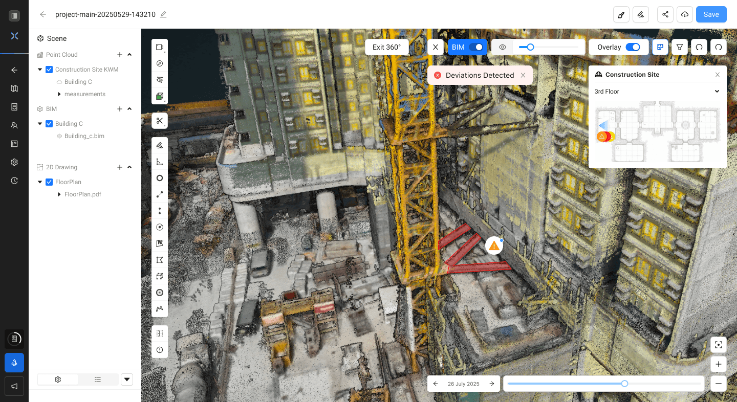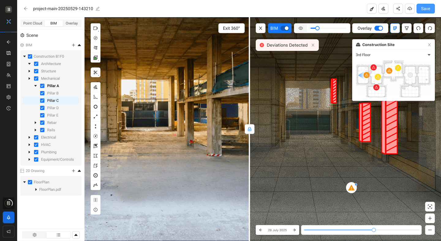 SpatialSense built-in tools automatically identify deviations, cracks, and surface defects, enabling early intervention with predictive foresight.
