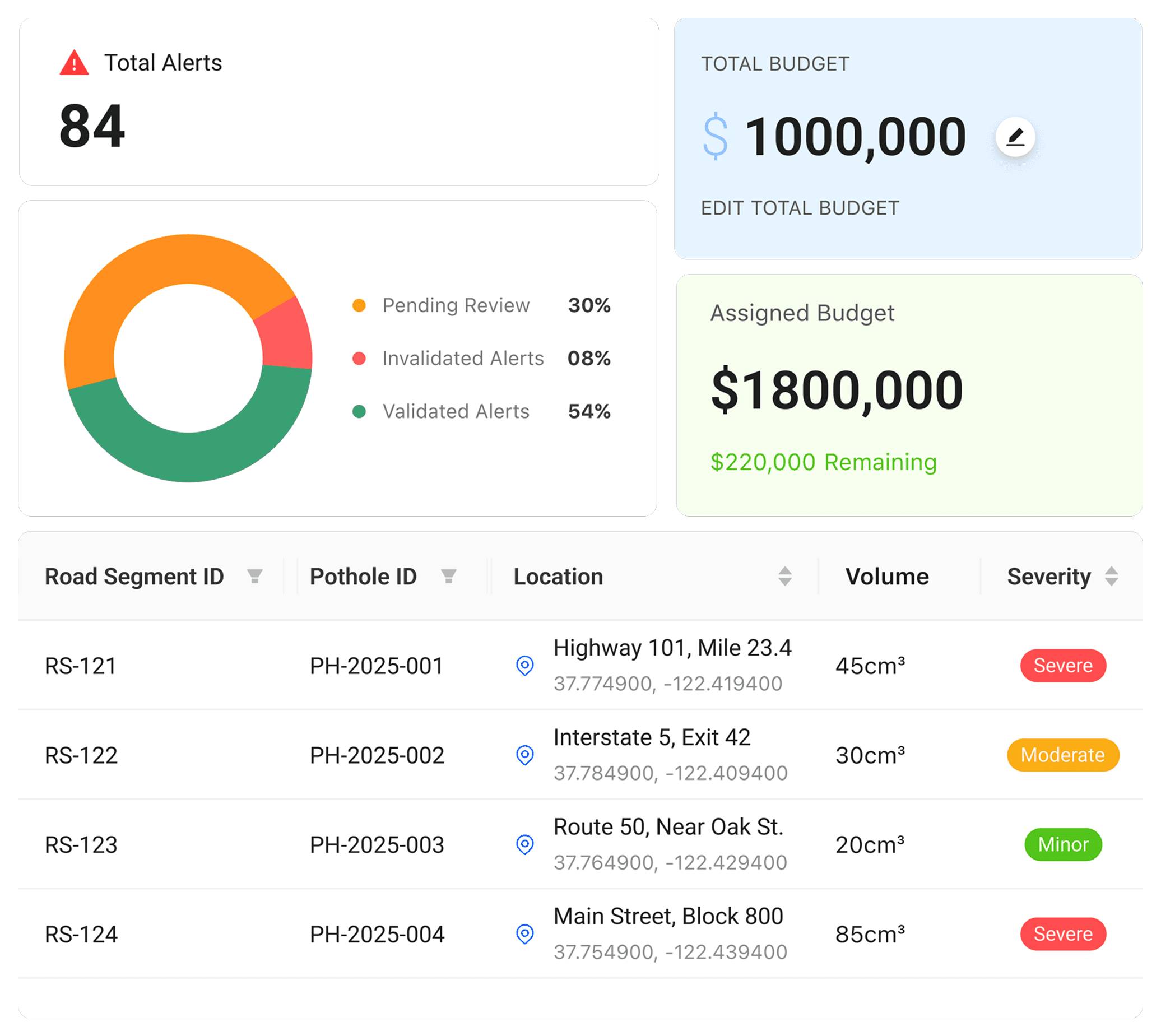 Manual inspections miss cracks, potholes, & fading markings leading to costly, delayed repairs